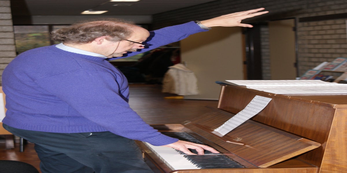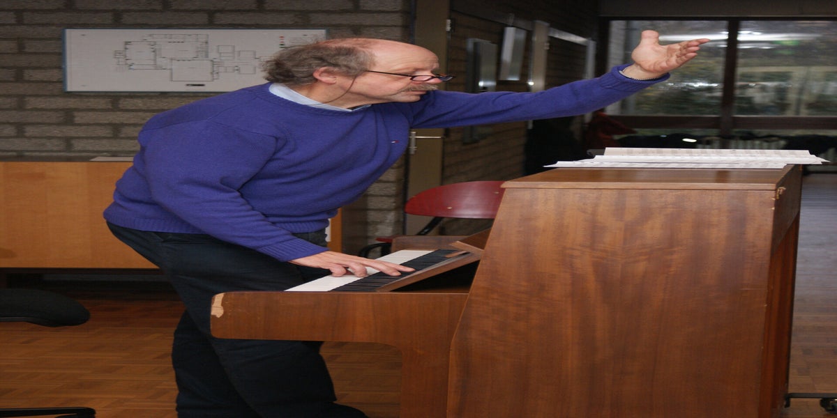 Vandaag bezocht de (tijdelijke) voorzitter van de VMP de repetitie. Zo komt er elke week wel iemand binnen lopen om te kijken hoe het gaat.