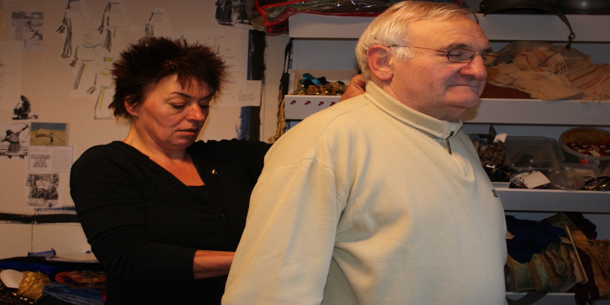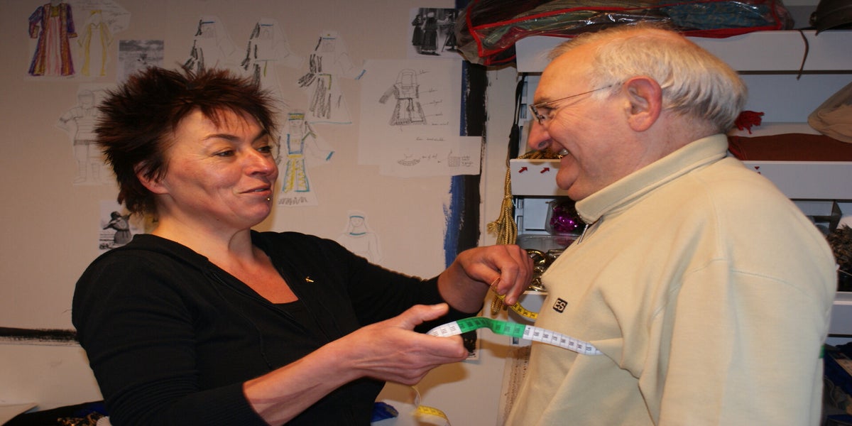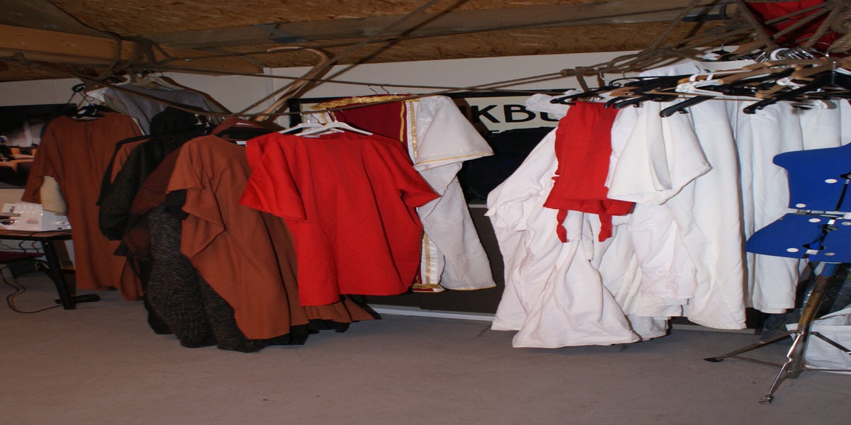 In de Doolhof werd er op dit moment ook hard gewerkt. Cor van Leipsig was druk bezig met het kruis en werd ondertussen geïnterviewd door een cameraploeg. Verder was er vandaag pasdag voor de figuratie. Groot en klein kregen hun kleren uitgereikt. Morgen is het koor aan de beurt. En kunnen we op naar de eerste repetitie in kleren!