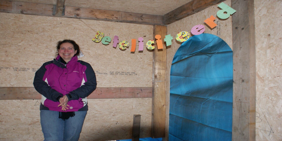 Als ik in de Doolhof ben schuif ik nog snel even aan bij het productieoverleg. Cees is aan het dineren met een zakje vlammetjes. Als we samen naar het theater lopen verteld hij me dat hij vandaag de hele dag aan de muziek heeft gewerkt. Voor de pauze is klaar! De huisjes zijn al bijna klaar. Sommige zijn al versiert met afdakjes boven de deuren. Ook is er gewerkt aan de stalen constructie die de bovenbühne draagt. Het krijgt zijn uiteindelijke vorm.