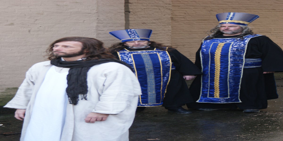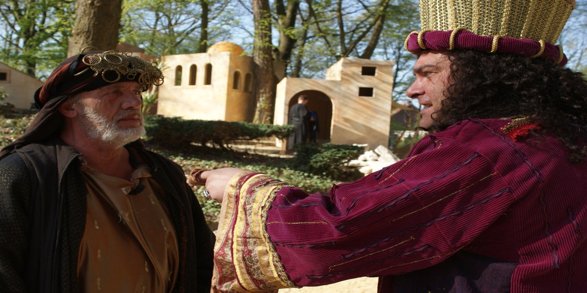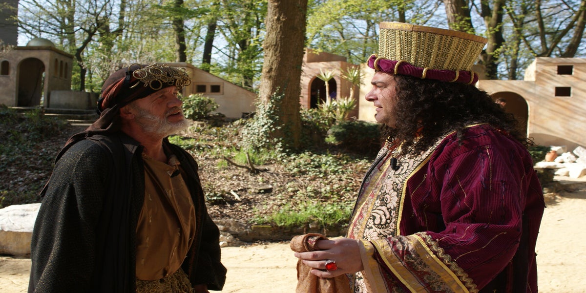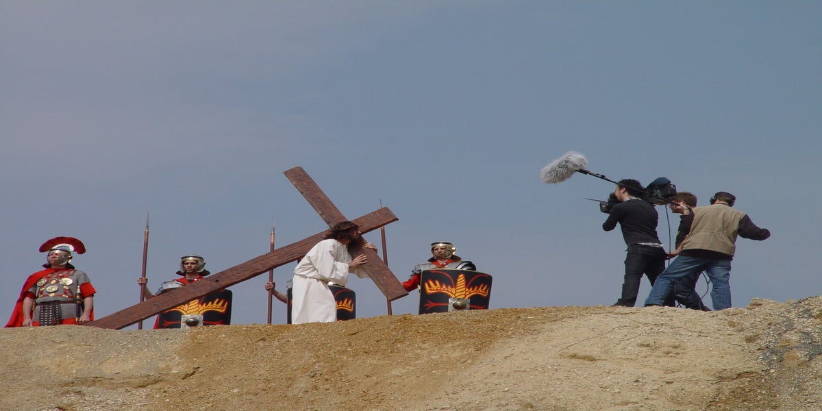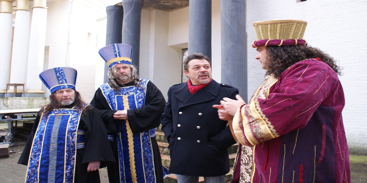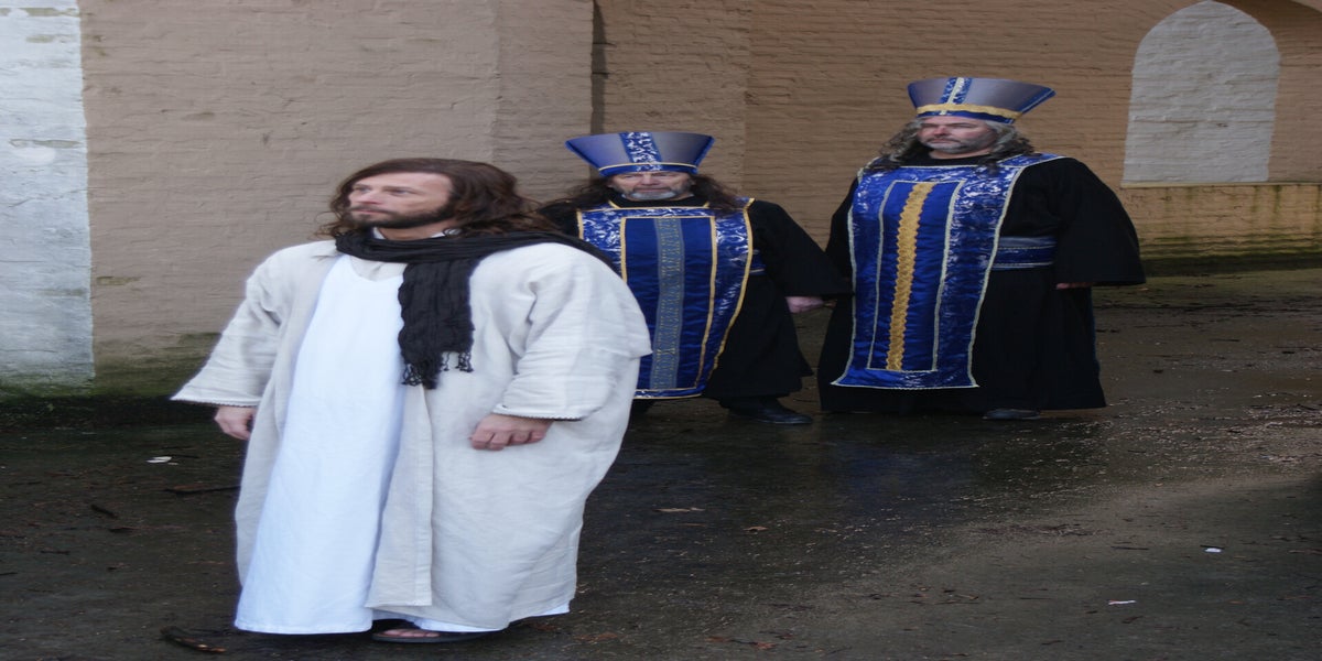 De televisieploeg staat te wachten op Cees en Nard. Daarna wordt de scène met Herodes opgenomen. Deze spelers staan geheel in kostuum, dit vond de KRO wel een leuk idee. Dat niet iedereen hiervan op de hoogte is blijkt als Pilatus “akte de precance” maakt in spijkerbroek.