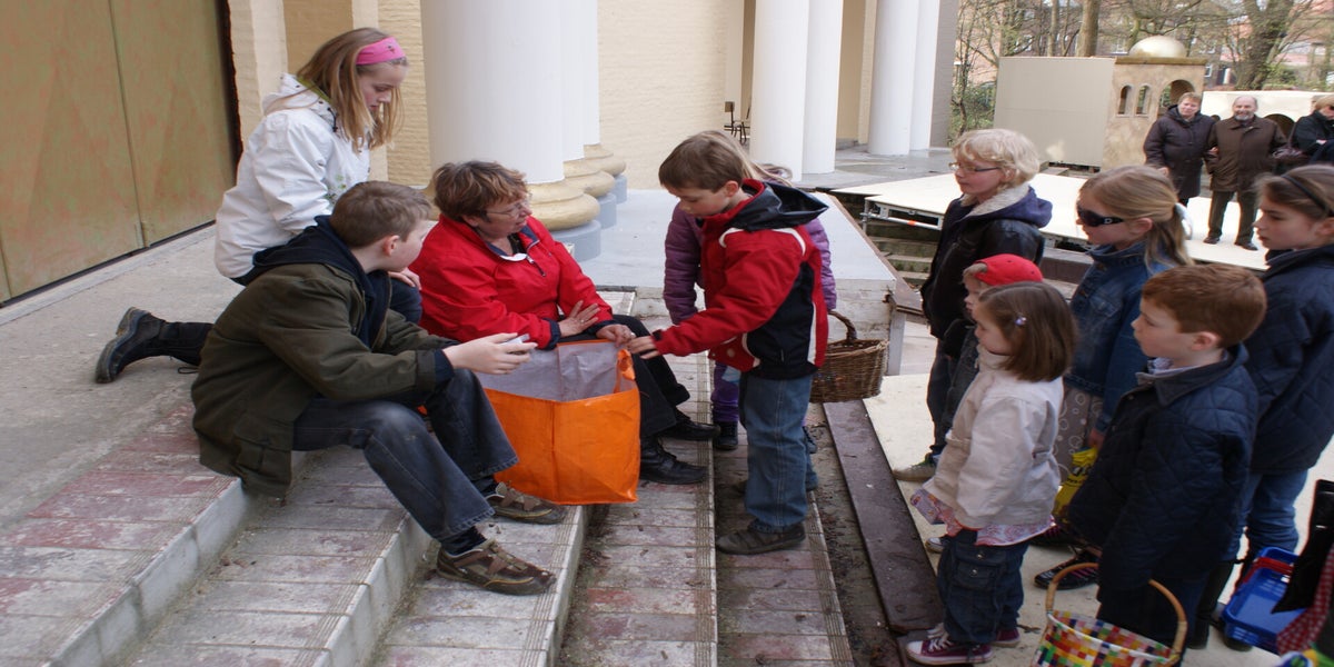 Rond elf uur zijn alle kinderen in de Doolhof en kan het zoeken beginnen. Dit nadat ze lekker wat te drinken hebben gehad van Lou. Vele ouders en andere Passiespelers kijken hoe de kinderen druk aan het zoeken zijn. Na een tijdje zoeken zijn alle eieren wel terecht en kunnen de prijsjes worden uitgereikt aan degenen die een nummer op hun eitje hebben staan.