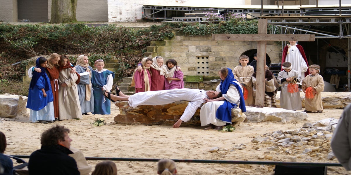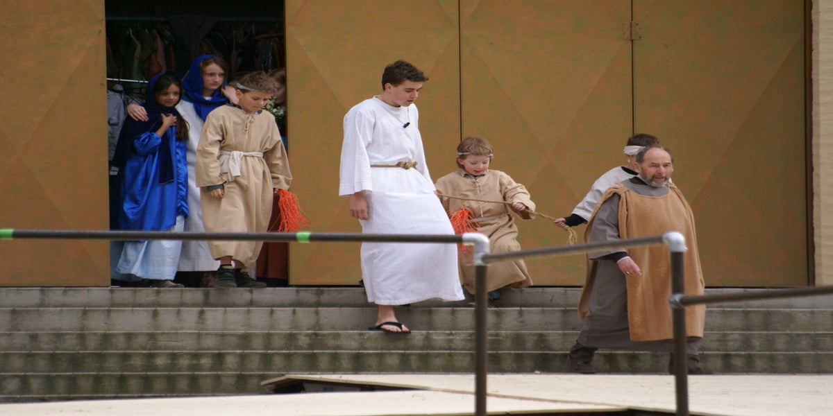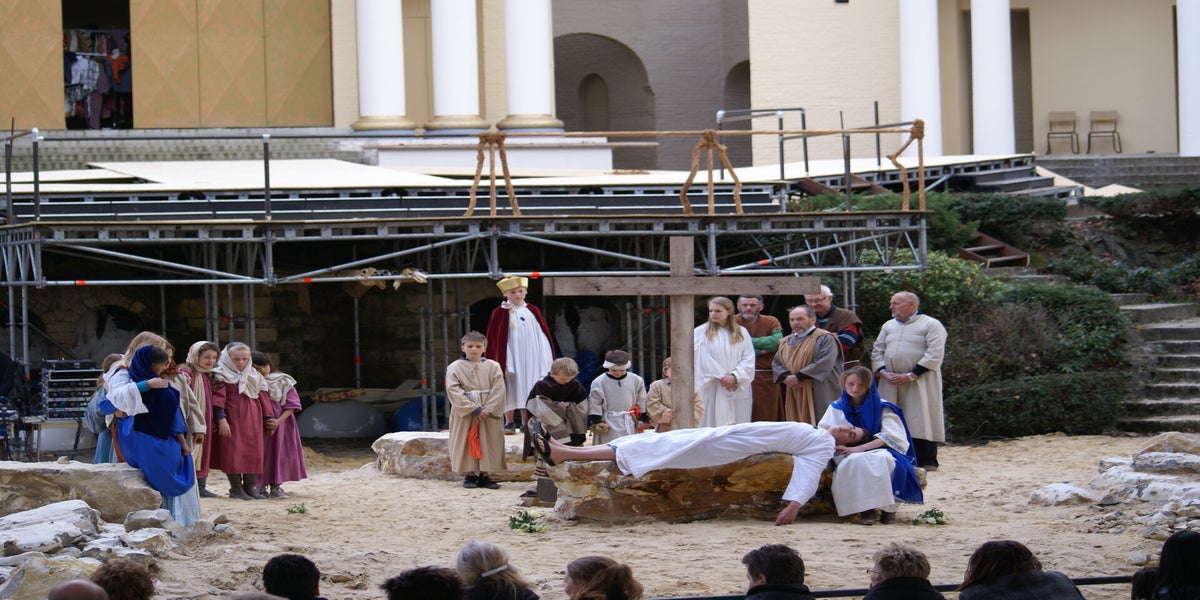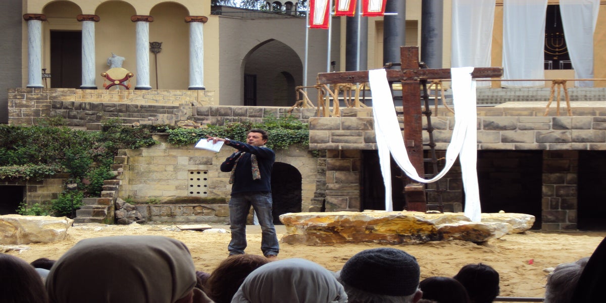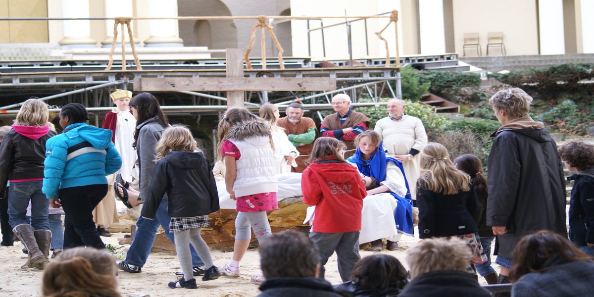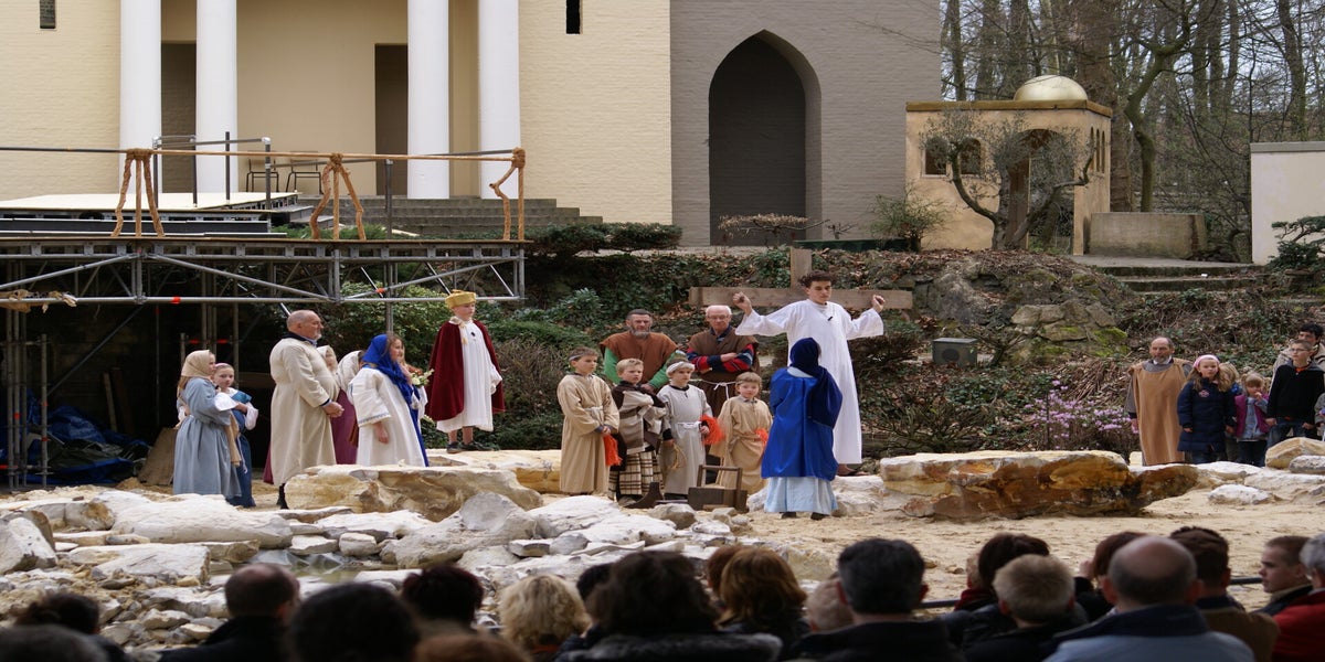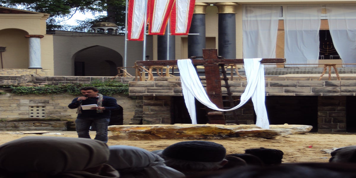 Voor de gasten brengen we de opening van de Passiespelen. Die is al zo vaak gespeeld dat dit geen probleem is.