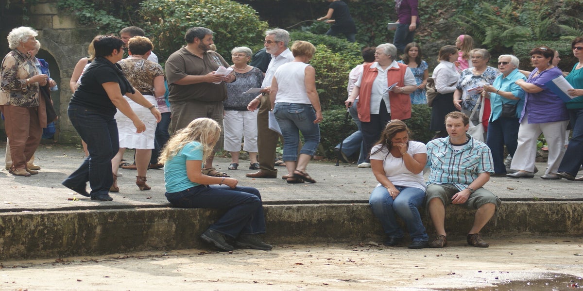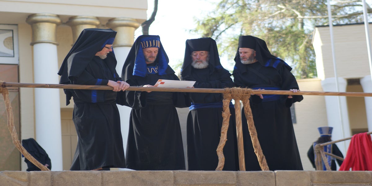Vandaag is er ook buitenlandbezoek. 2 zusters hebben op de tribune plaatsgenomen en ik hoor dat er eentje uit Japan komt. Hellaas kan ze er met de première niet bij zijn omdat ze dan weer terug is naar haar eigen land. De andere zuster, afkomstig uit Brazilië, zal het spel wel komen bekijken. Verder komt er iemand van een ander Passiespel even kijken. Hij staat enorm te kijken naar de veranderingen die zijn doorgevoerd in het theater.