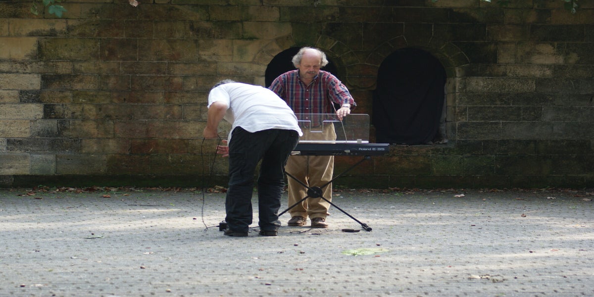 Vandaag kom ik de Doolhof binnen als het regent. Samen met Edith en Paula loop ik naar binnen. Lou van de Catering heeft de koffie al klaar. Tijdklok doet wonderen. Langzaam vallen de druppels naar beneden. Het ziet er naar uit dat het gaat regenen. Volgens Edith zou het tijdens de repetitie droog blijven. "Ja, ja", antwoord ik. "We zullen vandaag zien hoe jou band met boven is". Achteraf moet ik toch zeggen dat ze gelijk had. Het heeft tijdens de repetitie niet meer geregend, er scheen zelfs zo af en toe een zonnetje.