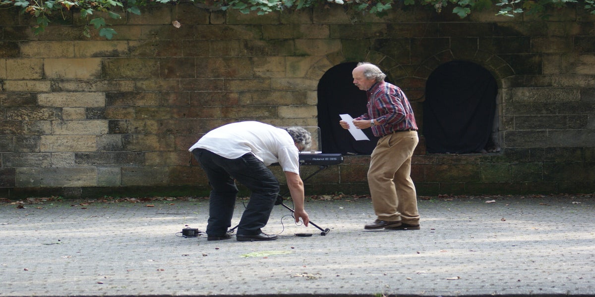 Als we klaar zijn zie ik op de tribune een paar “oude rotten” uit het Passiespelenvak. Wim Siebgens en Ellie Siebgens Denessen. Ontroert verteld Wim me dat hij het prachtig vind. “Anders maar heel mooi. Heel mooi”