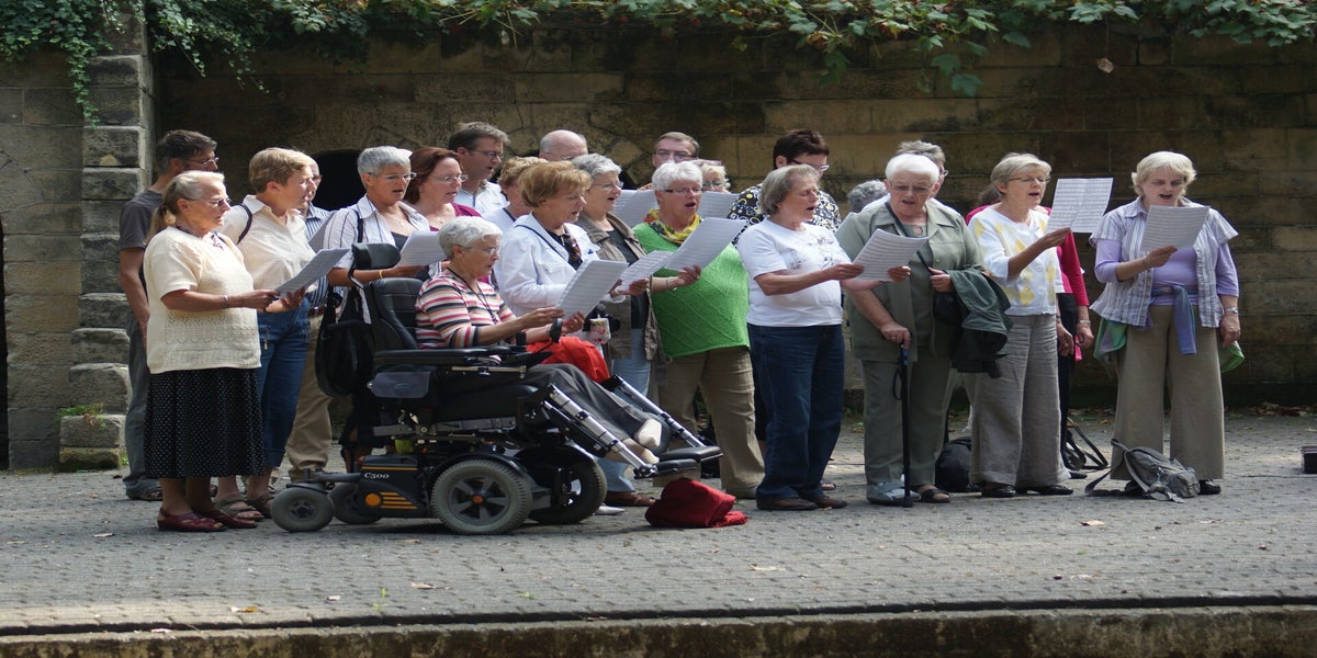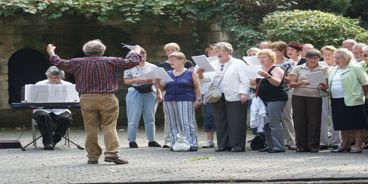 Als een nummer gezongen was en de muziek stopte hield iedereen de adem in. Men wou graag de natuurlijke echo horen. Dan klonk uit de speakers het geluid van Nard: "dat was ok". Dan klonk op het podium een zucht van verlichting. Bij mezelf dacht ik, als NArd maar niet te lang wacht. Dadelijk houden ze de adem zo lang in dat er enkele koorleden door zuurstof gebrek omvallen.