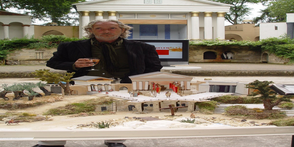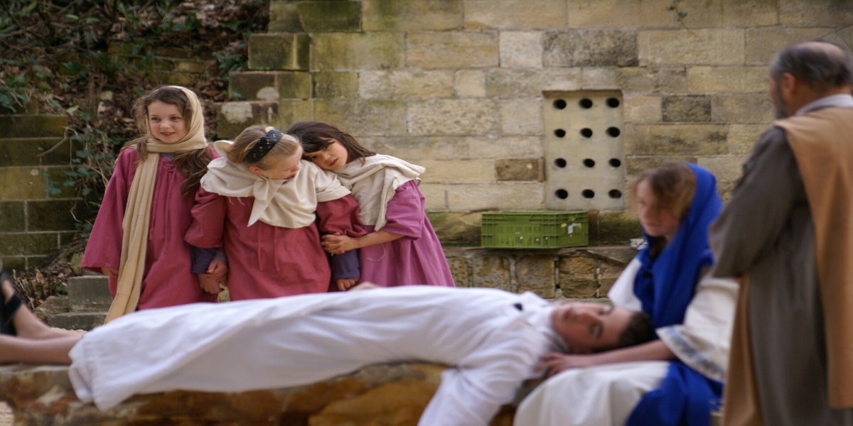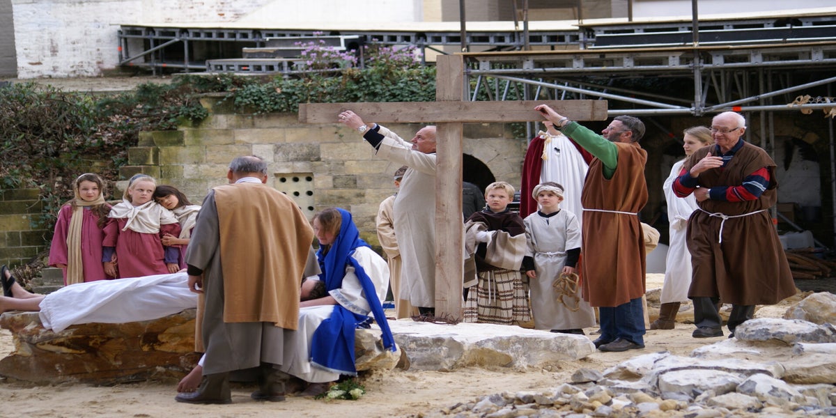 Vandaag is de jaarlijkse eiertip van de VMP. Alle kinderen en kleinkinderen zijn op deze morgen welkom om eieren te gaan zoeken in het decor van de Passiespelen. Als ik zo rond kwart over tien de doolhof kom binnen gereden is Cor van Leipsig al druk bezig met het afwerken van de huisjes. Het wordt prachtig. Kort hebben we het over het item in het NRC van afgelopen zaterdag. Ik vraag hem wat hij op de foto moest voorstellen? Van René (met broden en vis), Hans (lopend over water), en Theo (knielend in de hof van Olijven) wist ik het wel. Maar Cor? Helemaal met wit spul over zijn lichaam. "Het was scheerschuim en moet de zalving voorstellen, ik vond het zalf helemaal niets en heb dit nog tegen de fotograaf gezegd. Ook het lopen over water. Te cliché. Weet je hoe vaak tegen mij is gezegd toen ik Jezus was: Hé, loop eens even over het water!"