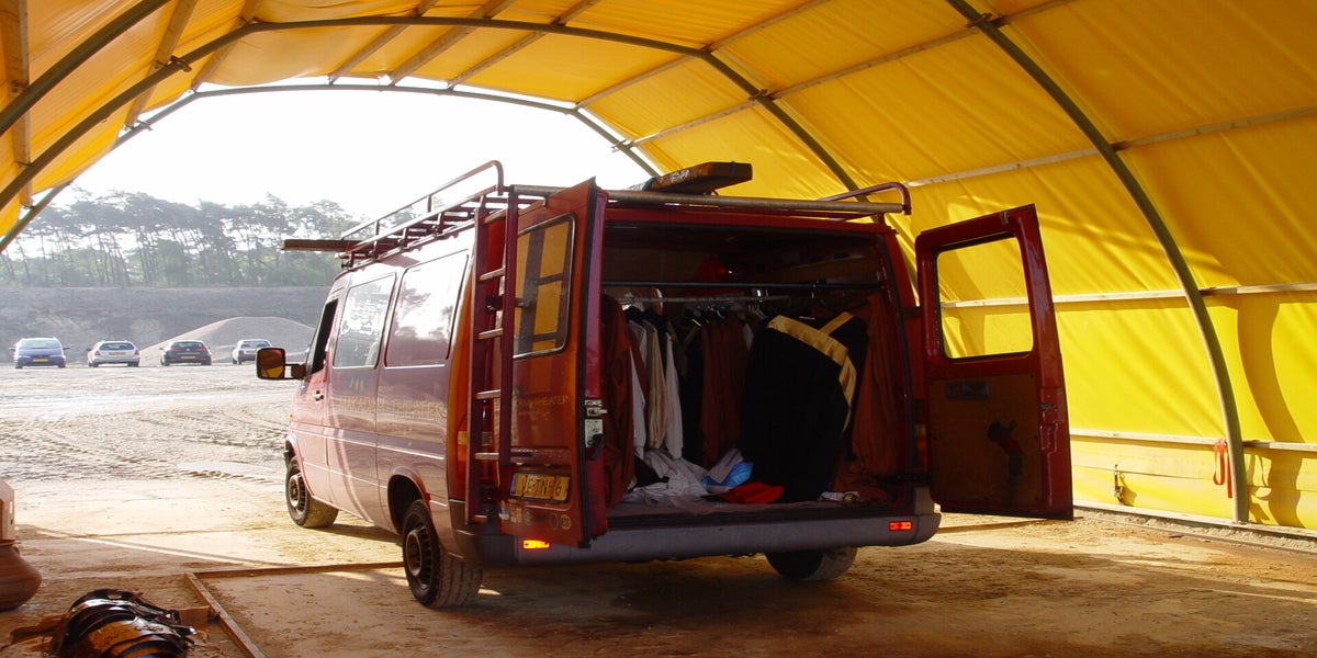 De grote tent achter het toneel staat er al. Ook de tent voor de bezoekers staat ook al, en op het moment van mijn binnenkomst wordt de laatste hand gelegd aan de VIP-Tent.